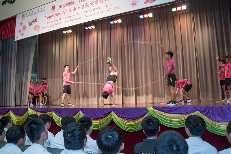 Mr Ricky Wong, Project WeCan Committee Member, Ms Irene Leung, Chief Operating Officer of i-CABLE Communications Limited, Dr Tong Choi-wai, Project Director of Quality School Improvement Project of The Chinese University of Hong Kong joined the event as Guests of Honour. Students showed how they have benefited from Project WeCan’s support through drama and other performances.