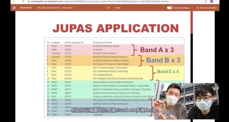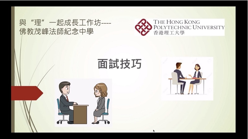 Due to COVID-19 pandemic, face-to-face services have been suspended since February 2020. PolyU students then hosted several online career talks and workshops. They also produced videos and prepared worksheets on different topics, including “Learning English”, “JUPAS Information”, “DSE Experience Sharing”, “Interview Skills”, etc. which were well received by the students.