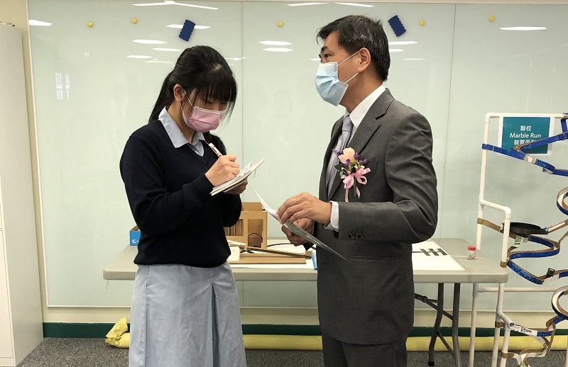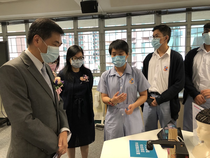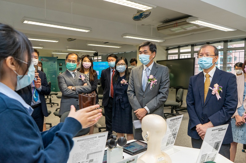 Mr Francis Li from Cushman & Wakefield, Mr Ricky Wong from Project WeCan Committee, representatives from the schools’ Incorporated Management Committee and other guests were invited to officiate at the Ceremony. The InnoSTEMer Laboratory marked an important milestone of the school’s STEM teaching development. Students further showcased their innovative designs and ideas which helped to shape the community. Guests were impressed by students’ passion and achievements in STEM and they could hear students smiling behind the masks.