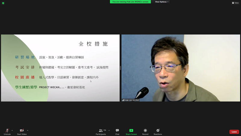 In addition, five Teachers’ Development Days had been held between February and March. About 4,000 principals and teachers participated in around 90 online workshops with topics covering instructional leadership, teaching and learning, student development, whole person development and counseling. A great thank you also goes to a number of partners/organizations who offered talks covering topics of different industries like culture, watch, logistics, electricity and real estate. All teachers found the workshops informative and were able to broaden their horizon.