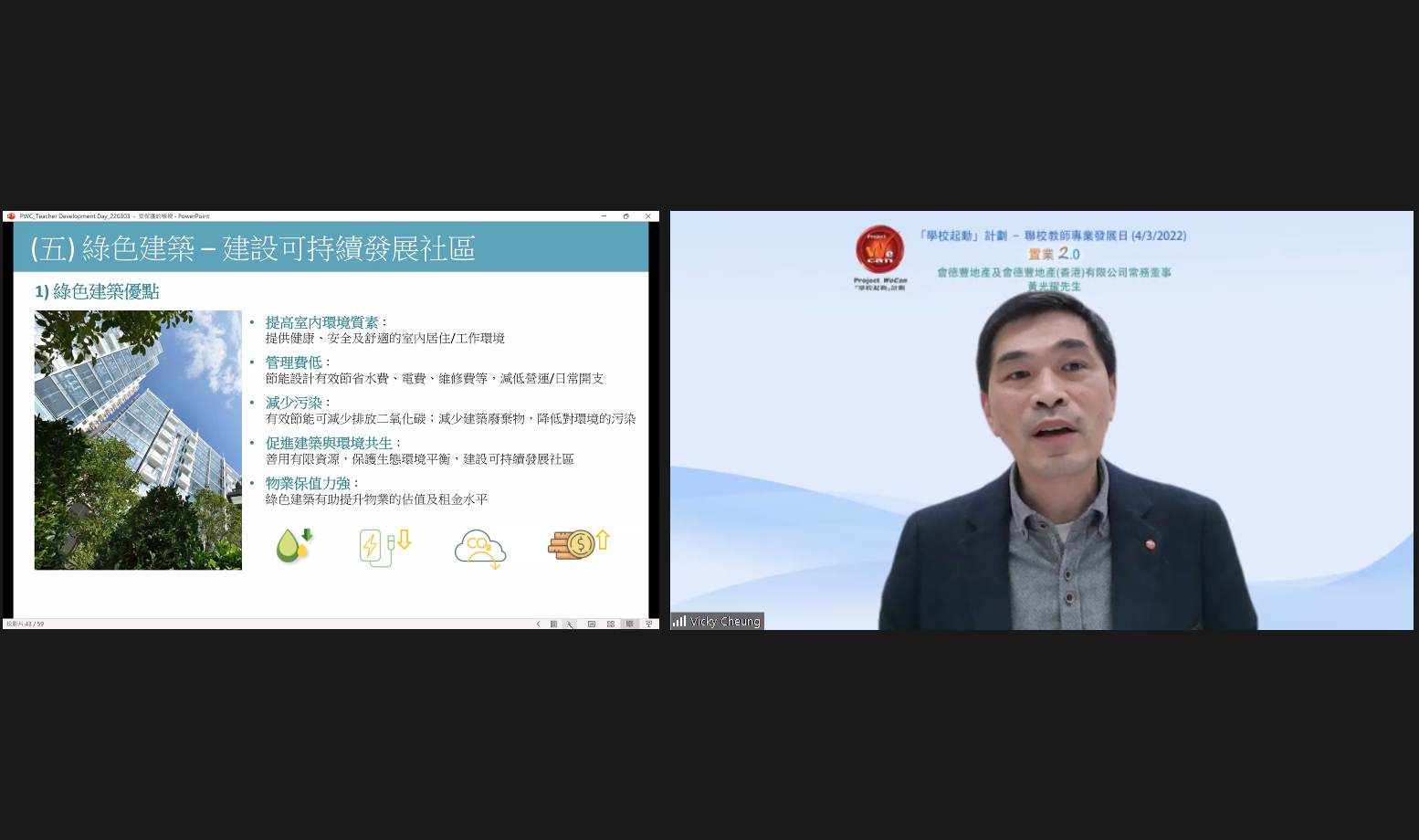 In addition, three Teachers’ Development Days had been held in February and March 2022. Around 3,000 principals and teachers participated in 54 online workshops with topics covering instructional leadership, teaching and learning, student development and life education. Guest speakers from partners and different academic fields were also invited to give talks covering topics like financial literacy, hotel management and real estate. All teachers found the workshops informative and able to broaden their horizon.