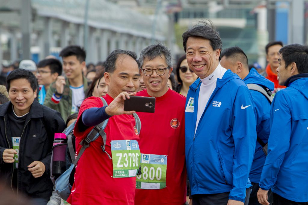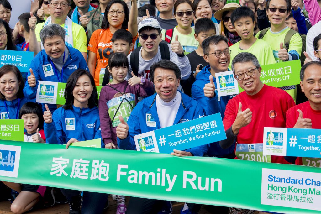 「學校起動」計劃委員會主席吳天海先生及渣打銀行大中華及北亞地區行政總裁洪丕正亦聯同其夥伴學校樂善堂梁銶琚書院的校長及同學參加1公里「家庭跑」,代表著「學校起動」計劃是一個「大家庭」,希望不同企業、機構及專業人士一起參與,幫助更多學習條件稍遜的學生。