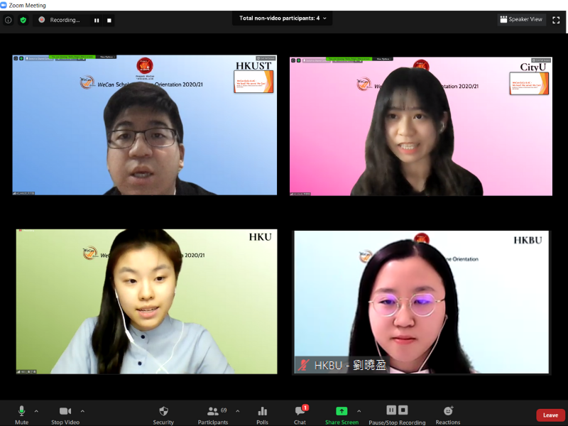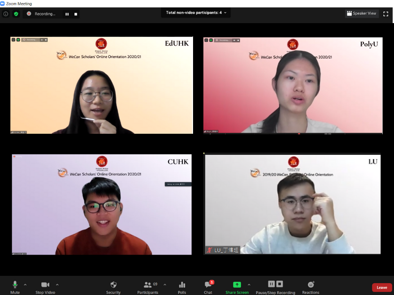 由於疫情關係,今年「學校起動」計劃獎學金得主迎新會分別於11月6日及11月13日於網上舉行,合共169名2019/20 及2020/21年度獎學金得主參加。「學校起動」計劃基金會委員會委員許仲瑛先生亦抽空出席其中一場迎新會,支持及勉勵同學。