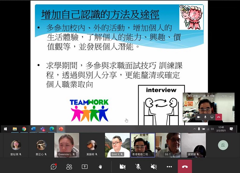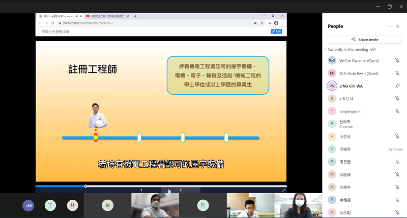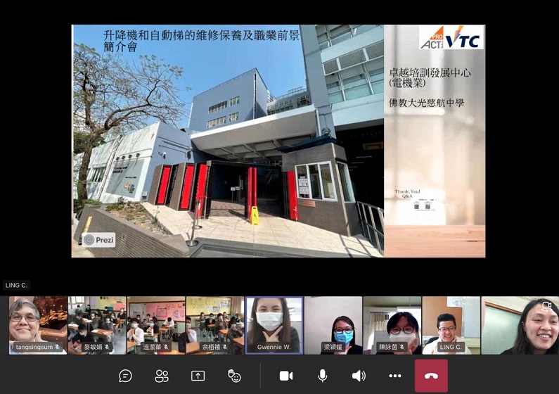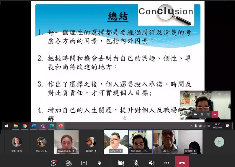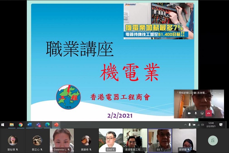 香港電器工程商會委員會成員於2021年2月2日及3月17日為超過150名佛教大光慈航中學的中三及中四同學安排了網上職業講座。他們不但介紹了機電行業的概況和職業前景,還分享貼士幫助學生發掘自己的興趣和技能,希望啟發他們為日後職業發展作好準備。